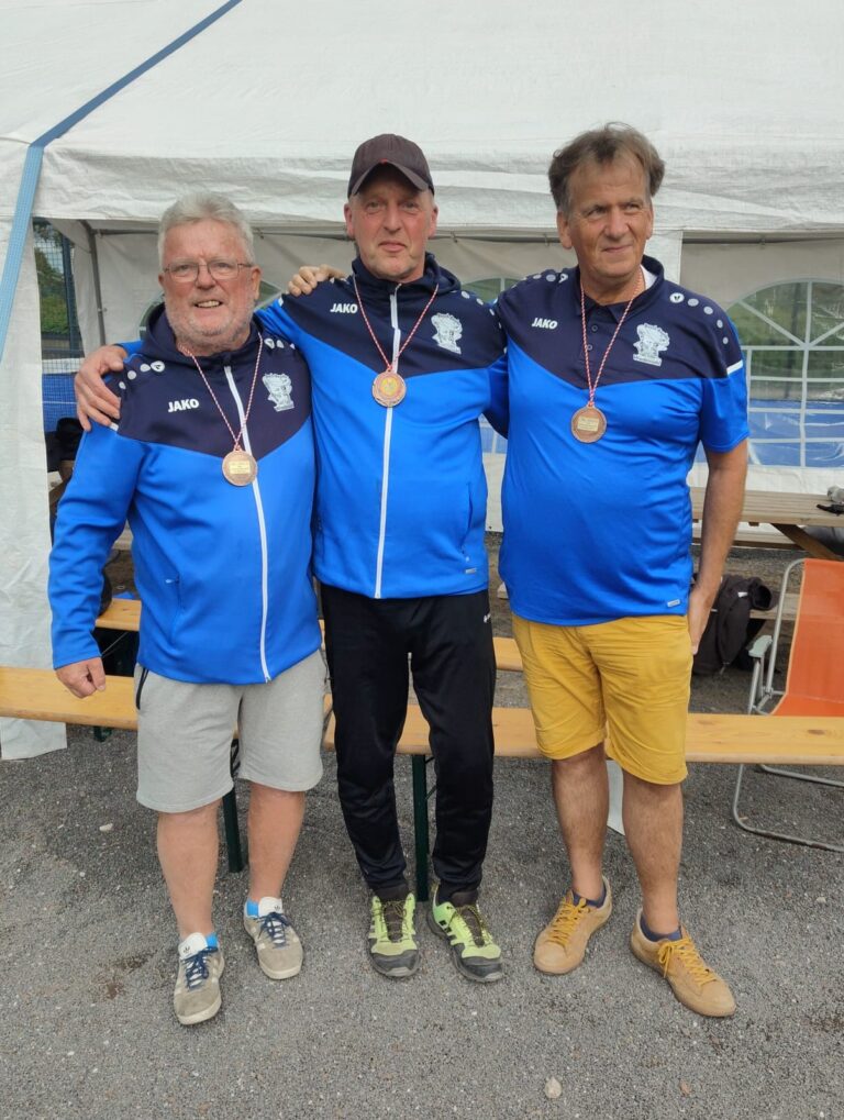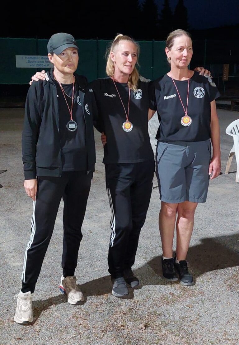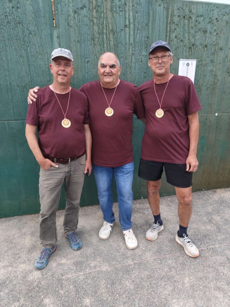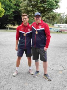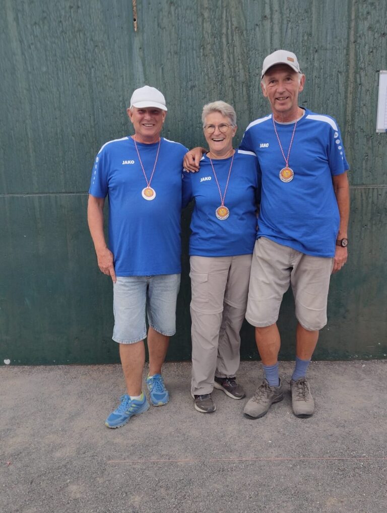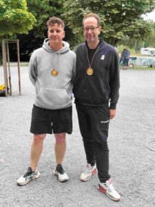 verfasst von Bettina am 08.09.2025 in LMBei sommerlichem Wetter wurden am 07. September 2025 die letzten Landesmeister dieser Saison gekrönt. Unter 162 Teilnehmer*innen bei der LM Tête setzte sich im Finale Honoré Balié vom SV Innerstetal souverän gegen Martin Kuball von der Boule Compagnie Osterholz durch. Bronze-Gewinner Rainer Behrens von Klack Osnabrück (Startnummer: 124!) hatte wohl mit seinem Erfolg nicht gerechnet und war schon auf dem Heimweg. Herzlichen Glückwunsch!