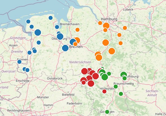 Da wir als zweitgrößtes Flächenland in der Bundesrepublik durchaus große Distanzen haben kann (z. B. zwischen Göttingen und Emden), zeigt die Karte, dass die Pouleeinteilung durch das Programm eine Erleichterung darstellt.